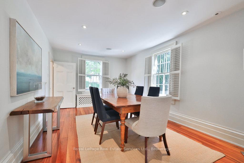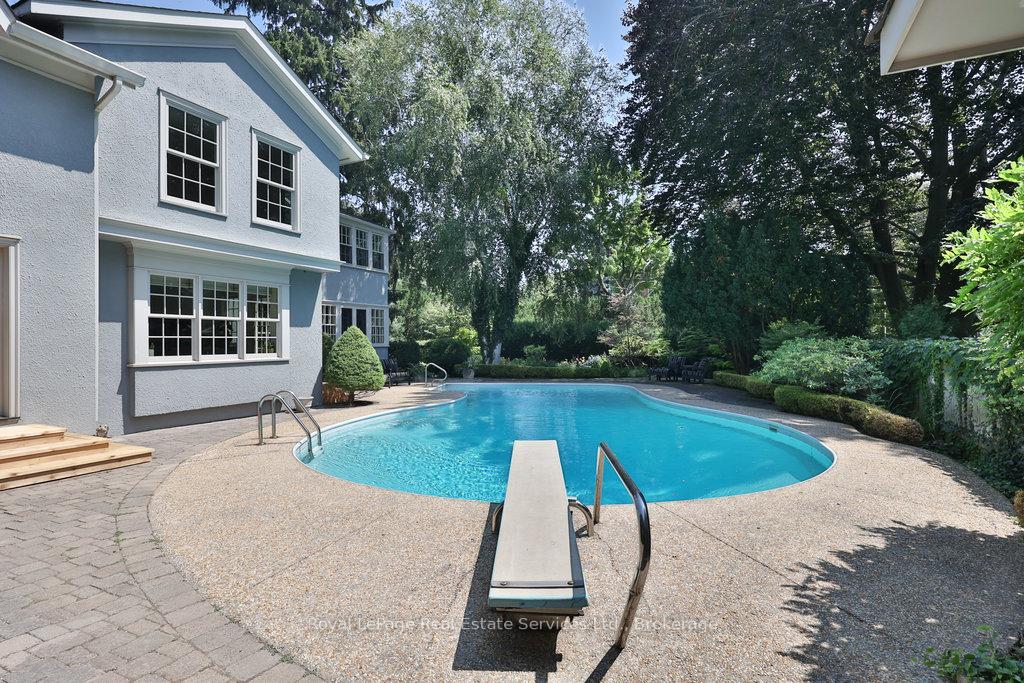 Welcome to 68 Thomas Street! This stunning heritage home (Georgian Revival circa 1835) offers the charm of yesteryear with today's modern amenities including a shaker-style kitchen with stainless steel appliances & countertop open to a bright, spacious breakfast area overlooking the pool and gardens. A sun-filled family room with wraparound windows and gas fireplace, gracious dining room with cross ventilation windows, main floor office/exercise room, 4 bedrooms including a gorgeous primary retreat with 4-piece ensuite, walk-in closet and lovely view of the serene rear yard. Hardwood floors, pot lighting, new A/C (2025), furnace (2016), roof (approx 10 yrs), beautiful millwork and trim, single car garage with studio space above. The property is secluded and private with spectacular towering trees and features a custom saltwater pool and surrounding terrace with multiple lounging areas. Designed by Sakura Gardens and featured on the Oakville Garden Tour, the property is exquisite and one of a kind. All just steps from the lake, harbour, shops and restaurants of downtown Oakville.