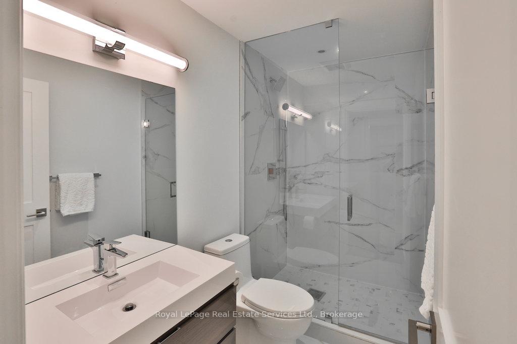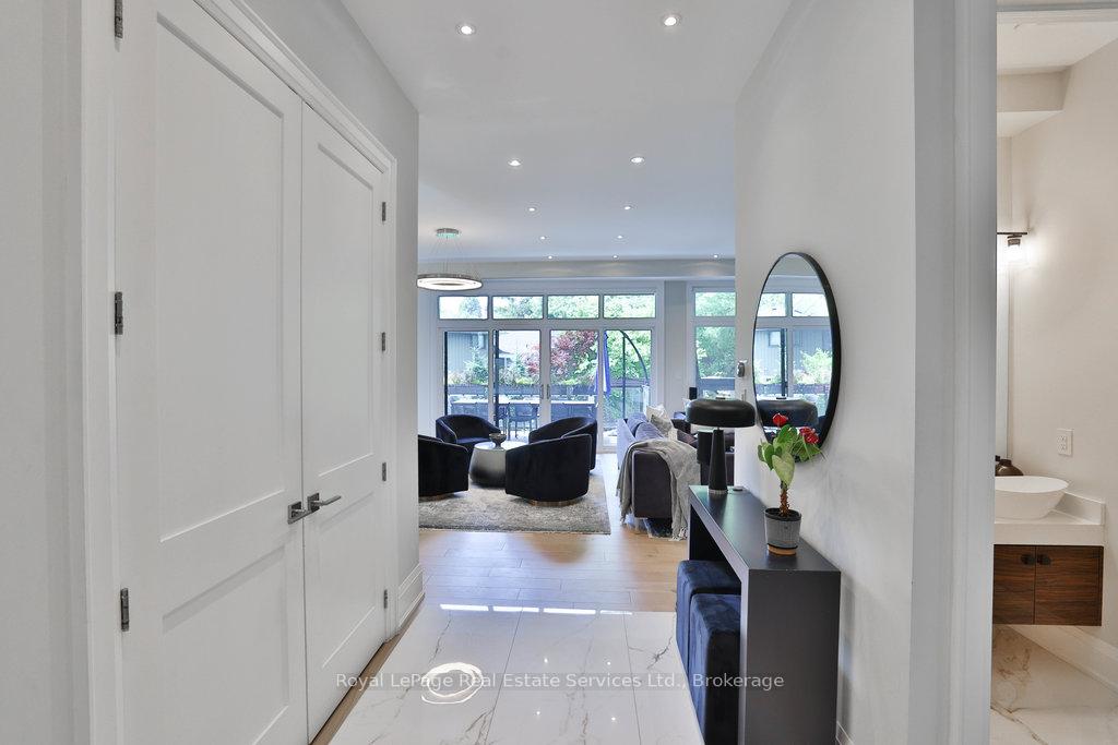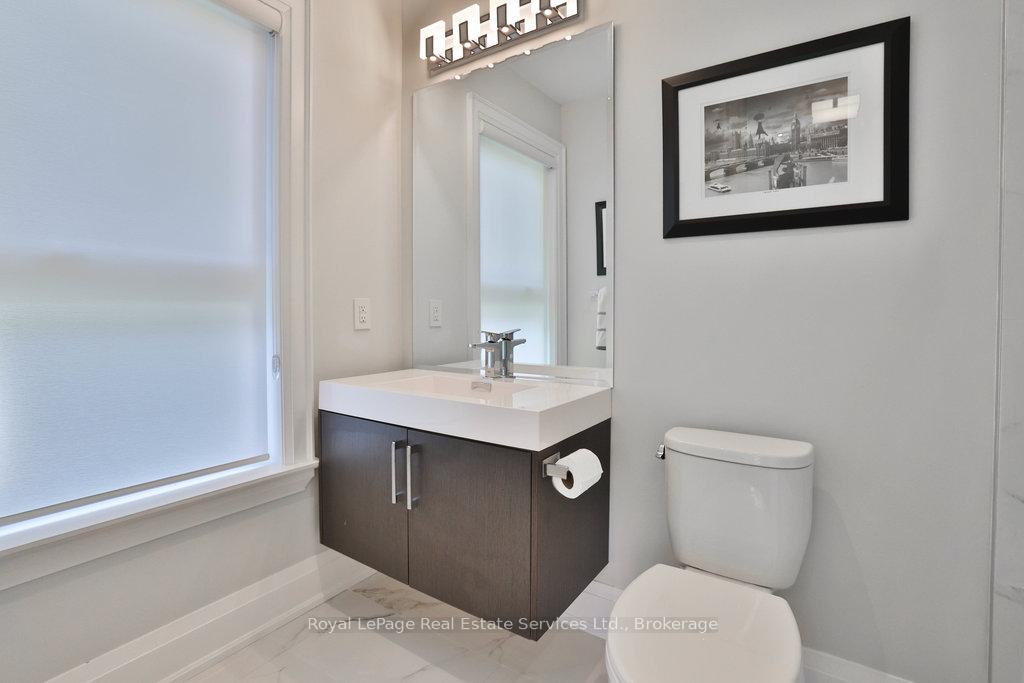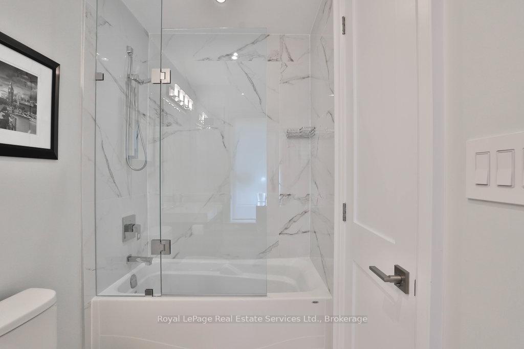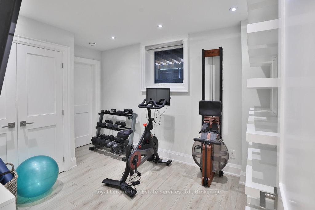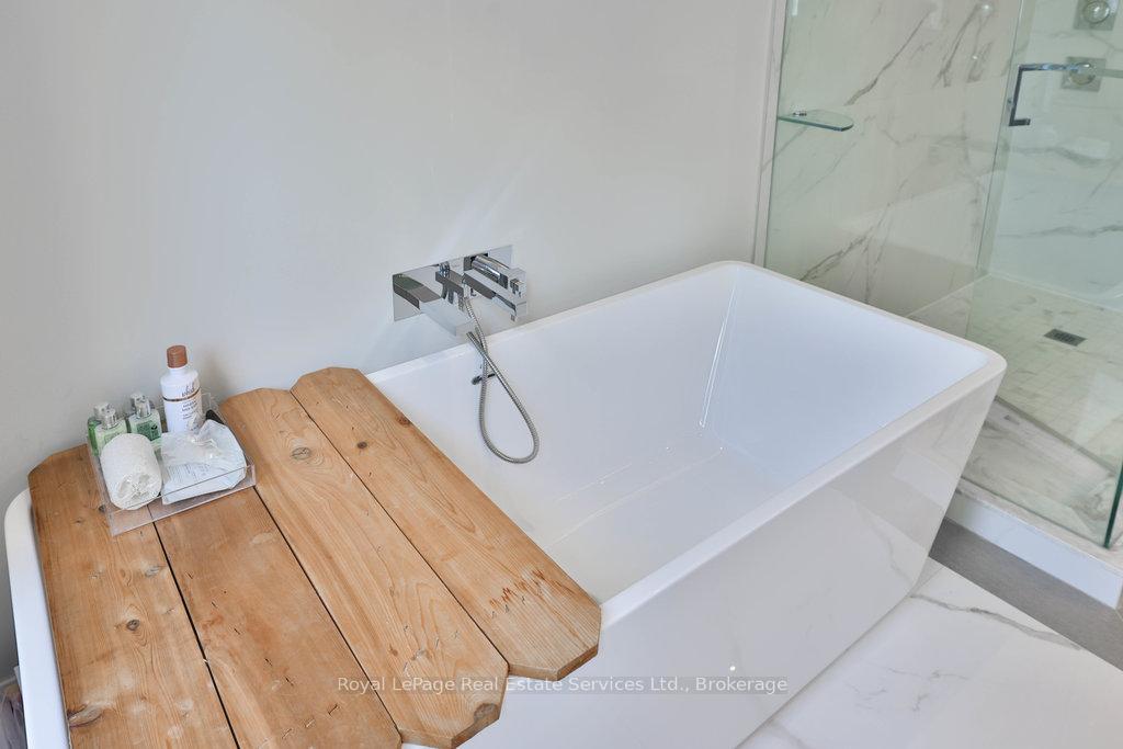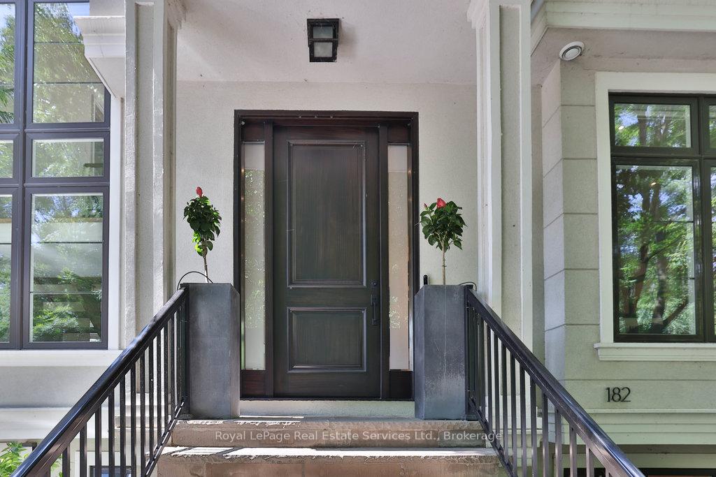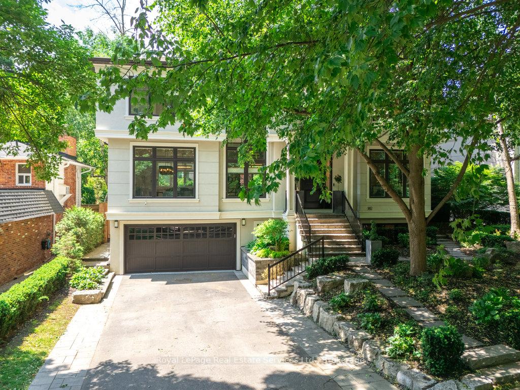 Stunning contemporary designed custom 4+1 bedroom, 5 bathroom home in prestigious Southeast Oakville, directly facing Charnwood Park. With over 4,000 sq ft of luxurious living space across three levels, this home features 10ft ceilings on the main floor and 9ft on the second. The main level offers a formal living and dining room, spacious family room, private office, and powder room. Wall-to-wall windows flood the space with natural light. The modern kitchen includes a large island, quartz countertops, high-end cabinetry, and top-tier appliances and walk-out to composite deck. Premium finishes throughout include floating stairs, solid core doors, designer lighting, coffered ceilings, heated floors, a convenient upper-level laundry room, and custom motorized blinds in the main and primary bedrooms. All 4 upper-level bedrooms feature their own private ensuite. The fully finished basement includes a large recreation room, oversized windows, additional bedroom, and full bath, ideal as an in-law/teenage suite. Additionally there are multiple storage closets and inside entry to double car garage with epoxy floors. Outside, enjoy a stunning fully fenced backyard nestled among mature trees, perfect for entertaining. Features include a large deck, outdoor kitchen with gas BBQ and Fontana Forni pizza oven, 8-person Beachcomber hot tub, natural gas firebowl, beautiful gardens, a custom pergola with full electrical and pivoting TV mount, two custom sheds, and an irrigation system. Additional upgrades include an EV charger, home security cameras, and custom closets. Located in Oakville's top school district (Maple Grove PS, EJ James, St. Vincents and Oakville Trafalgar HS) and just a short walk to the lake, parks, and scenic trails. Truly one of a kind.
