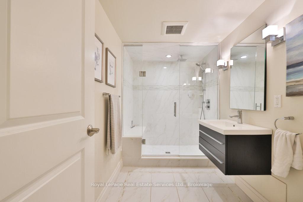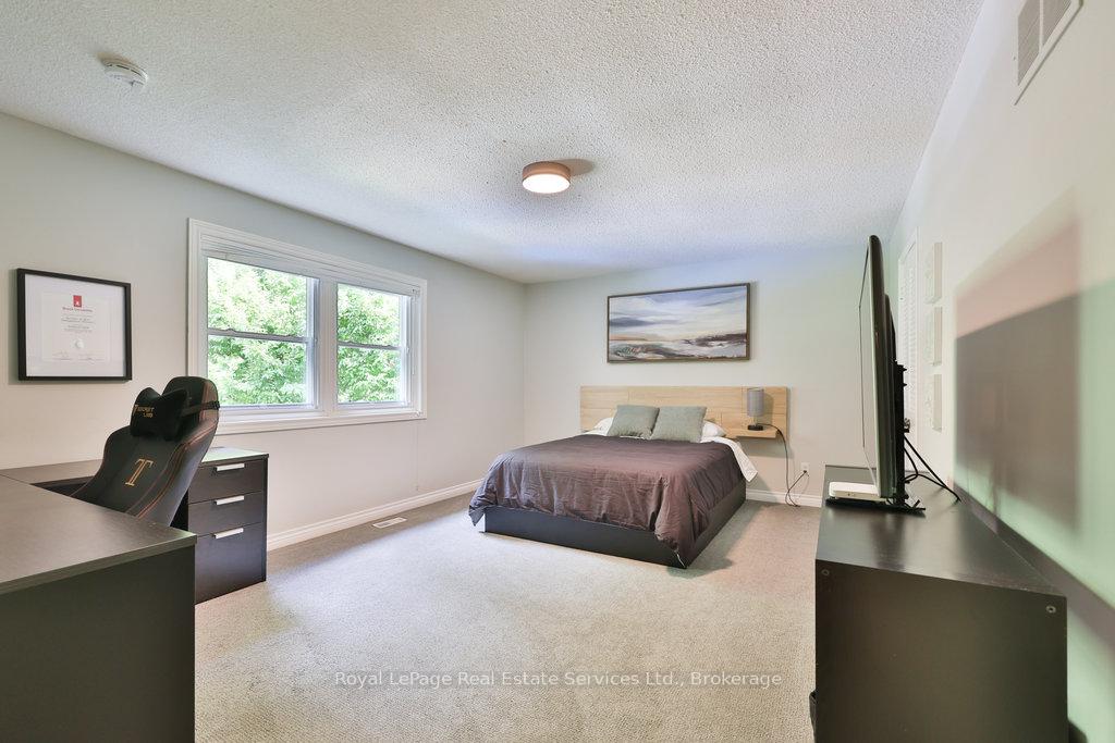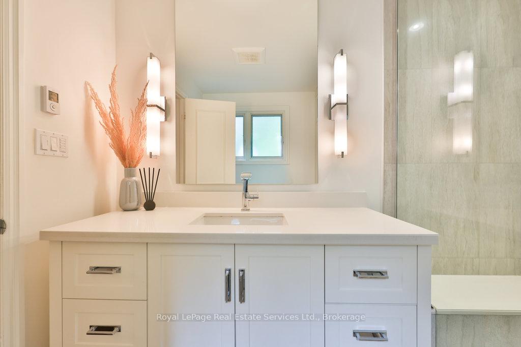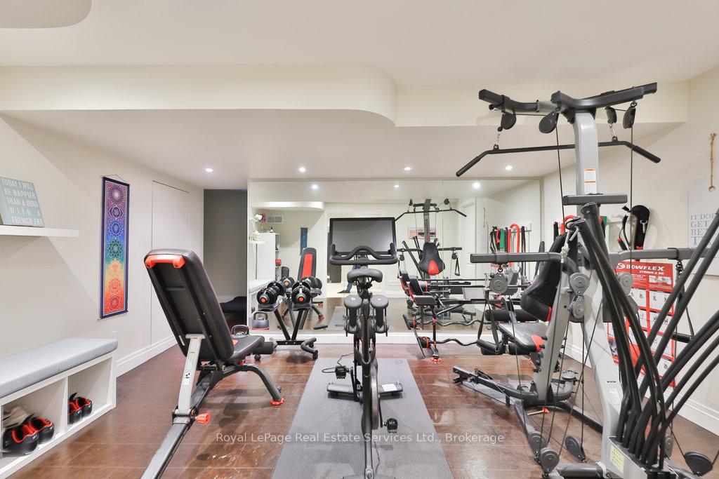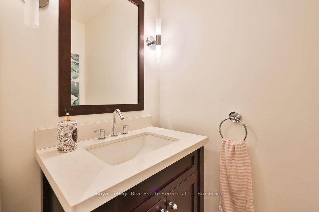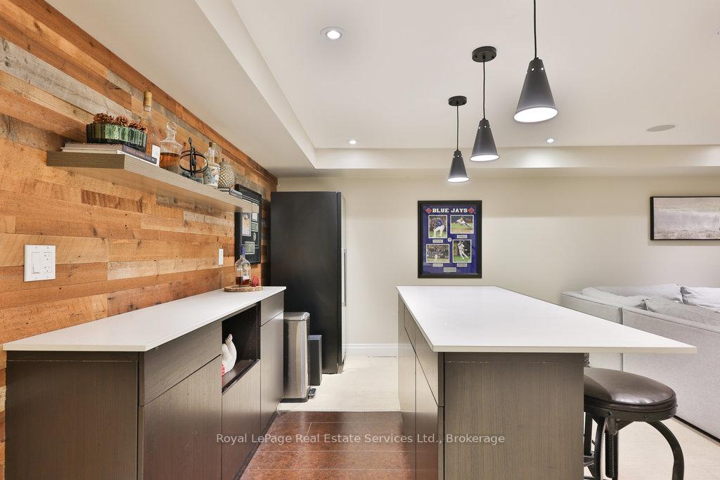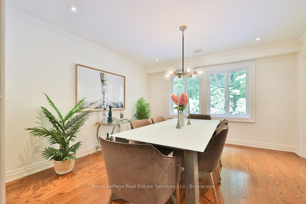 Stunning, fully renovated family home in desirable South East Oakville neighbourhood, backing onto serene greenspace & parkland. Thoughtfully updated throughout with high-end custom finishes, this south-facing property offers over 4,400 sq ft of beautifully finished living space, including 4+1 bedrooms & 3.5 baths. The spacious living & dining rooms feature oversized windows that flood the space with natural light. An impressive open-concept layout connects the family room, sunroom & gourmet kitchen, complete with a large island & breakfast area overlooking the private backyard with a saltwater pool. The expanded primary suite includes a luxurious 5-pc ensuite & generous walk-in closet. Three additional bedrooms offer ample closet space and are served by a stylish 3-pc main bath. The lower level is designed for entertaining & relaxation, with a large rec room, custom bar, built-in shelving, fireplace, games area, dedicated exercise room with cork flooring, 3-pc bath & abundant storage. Private backyard retreat complete with a saltwater pool, hot Sundance Hamilton Hot Tub, waterfall, pergola & lush perennial gardens. Relax in the hot tub and poolside bar with built-in shelving, fridge & TV. The addition of synthetic grass ensures a low-maintenance green space you can enjoy year-round. Recent updates include "Magic Windows" patio door & rear windows (2021), pool liner (2024), Saltwater chlorinator (2023), Sundance "Hamilton" Hot Tub (2021), pool bar with built-in shelving, fridge & TV (2021), synthetic grass in backyard (2021), Interior doors & hardware on main level (2021), professional spray painting of kitchen cabinets & fireplace surround (2021). Additional highlights include neutral décor, hardwood flooring, heated floors, coffered ceilings, custom built-ins, an abundance of storage & much more! Located on a quiet street in a top-rated school district with easy access to major highways & GO train - truly a perfect blend of luxury, comfort & convenience.