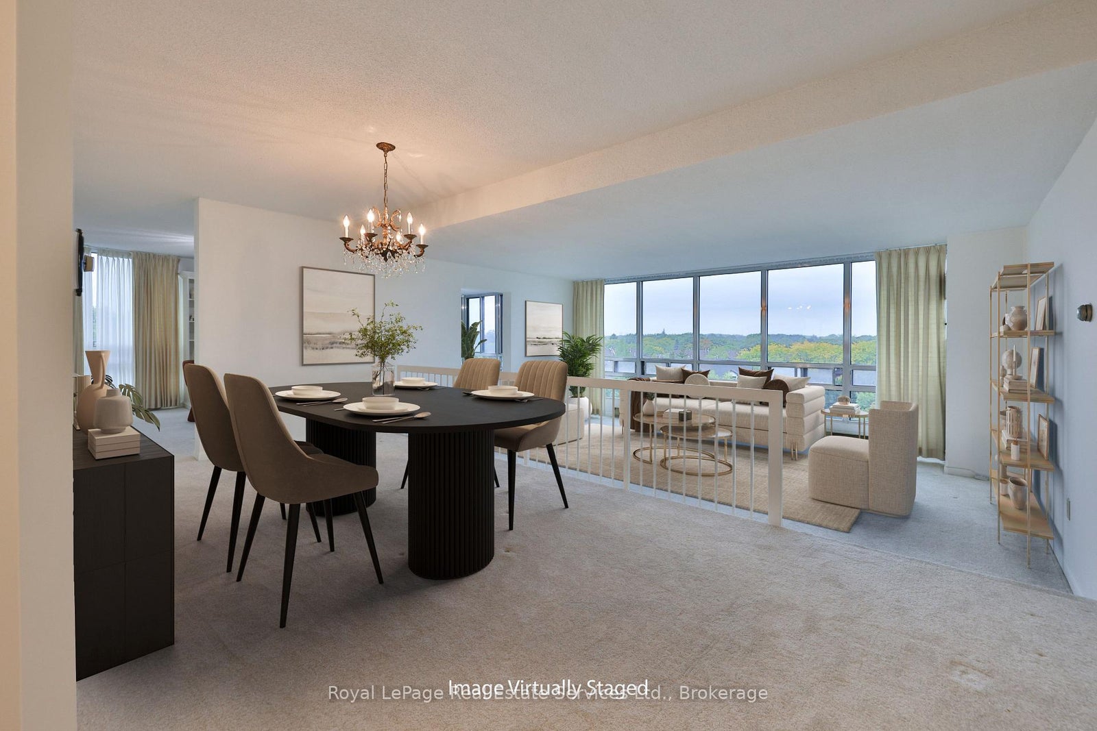 Welcome to luxury lakeside living in the heart of Bronte Village. This stunning 1830 sq ft condo offers a rare opportunity to enjoy breathtaking, unobstructed views of Lake Ontario and the Toronto skyline through floor-to-ceiling windows that fill the space with natural light. The spacious open-concept layout features a large eat-in kitchen, formal dining area, separate office/den, and a bright solarium - perfect for relaxing. The primary suite includes two double closets and a full 4-piece ensuite bath. The Ennisclare community enjoys access to exceptional resort-style amenities including an indoor pool and hot tub, sauna, fitness centre with organized activities, tennis and squash courts, games room, golf practice area, billiards, library, media room, woodworking and art studios, a party room with kitchen, a lakefront clubhouse, car wash, and 24-hour security. Set amid beautifully landscaped grounds with scenic walking trails along the lake, this exceptional condo is just steps from Bronte Harbour, the marina, waterfront parks, boutique shops and fine dining.
