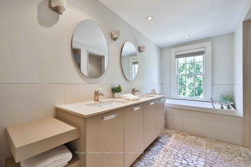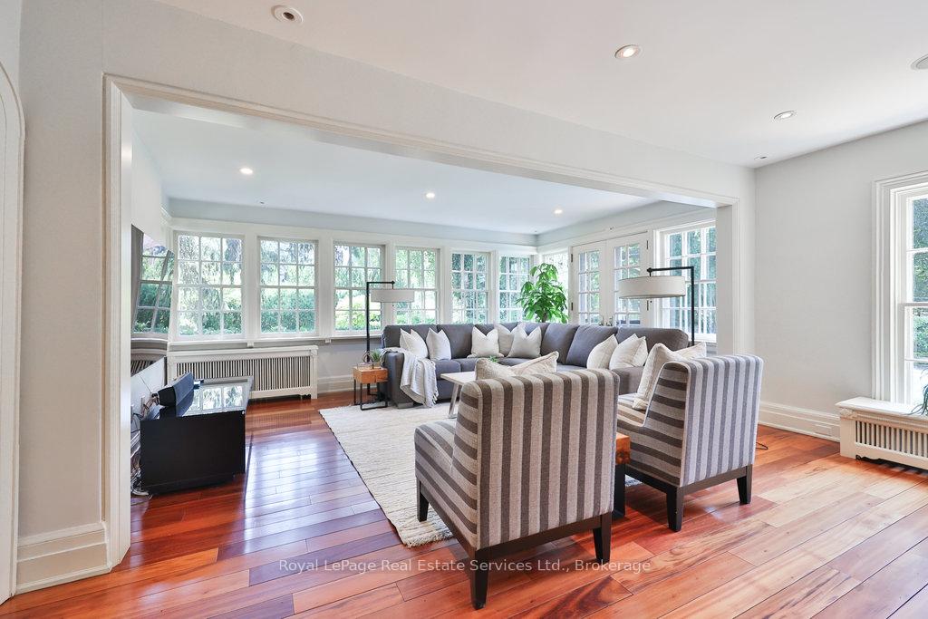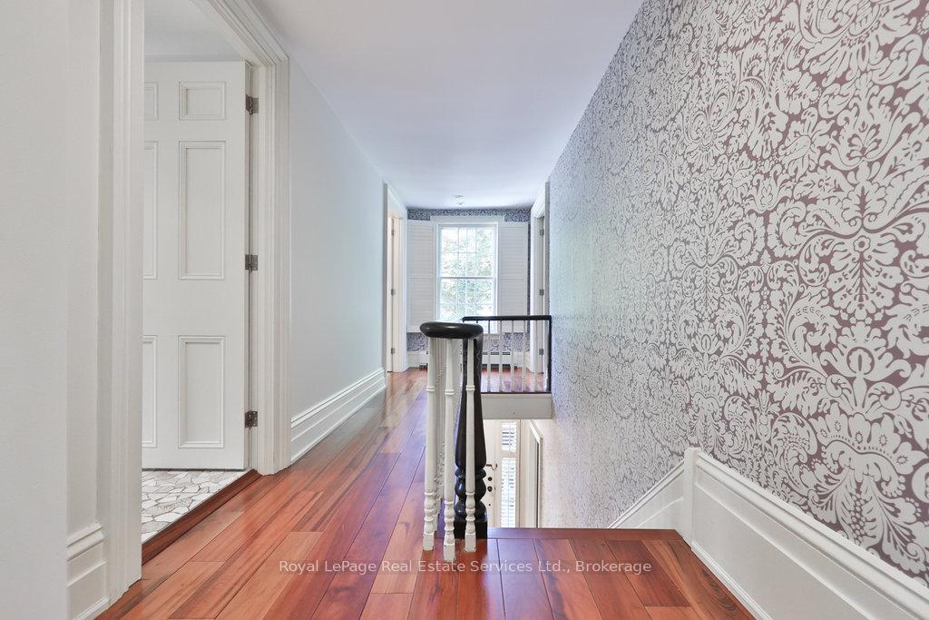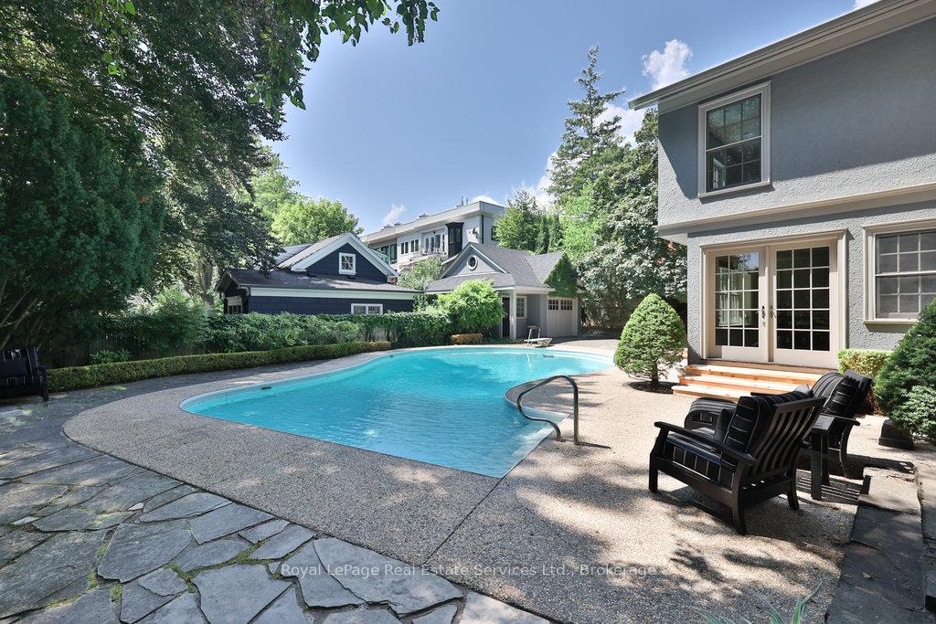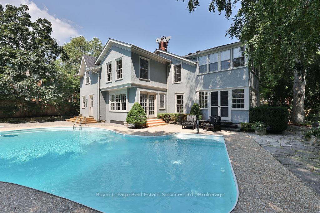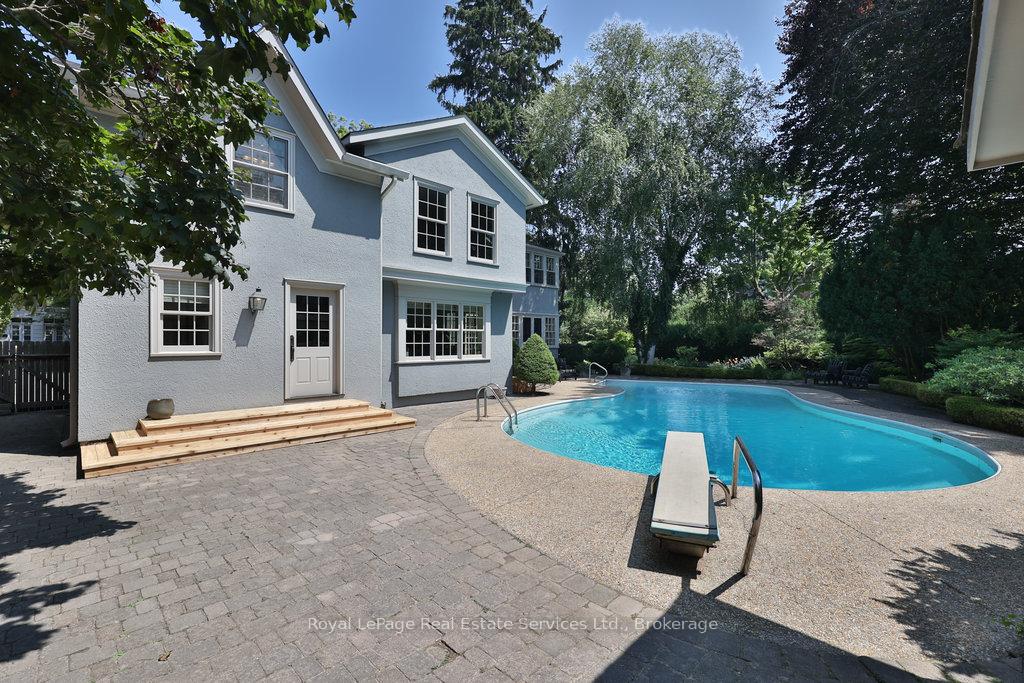 Welcome to 68 Thomas Street! This stunning heritage home (Georgian Revival circa 1835) offers the charm of yesteryear with today's modern amenities including a shaker-style kitchen with stainless steel appliances & countertop open to a bright, spacious breakfast area overlooking the pool and gardens. A sun-filled family room with wraparound windows and gas fireplace, gracious dining room with cross ventilation windows, main floor office/exercise room, 4 bedrooms including a gorgeous primary retreat with 4-piece ensuite, walk-in closet and lovely view of the serene rear yard. Hardwood floors, pot lighting, new A/C (2025), furnace (2016), roof (approx 10 yrs), beautiful millwork and trim, single car garage with studio space above. The property is secluded and private with spectacular towering trees and features a custom saltwater pool and surrounding terrace with multiple lounging areas. Designed by Sakura Gardens and featured on the Oakville Garden Tour, the property is exquisite and one of a kind. All just steps from the lake, harbour, shops and restaurants of downtown Oakville.